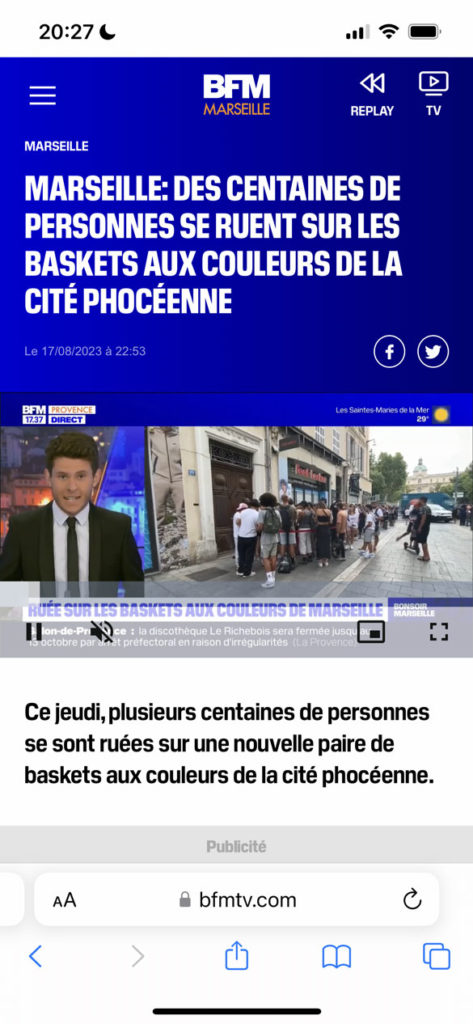 Read MoreMarseille: Des centaines de personnes se ruent sur les baskets aux couleurs de la Cité Phocéenne
